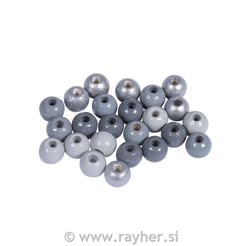 Lesene perle, FSC 100%, 6mm, srebrno sive, 116 kos