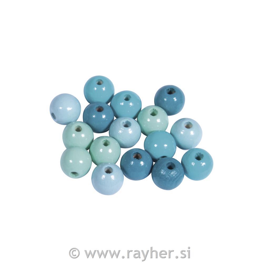 Lesene perle, FSC 100%, 10mm, turkizne, 52 kos