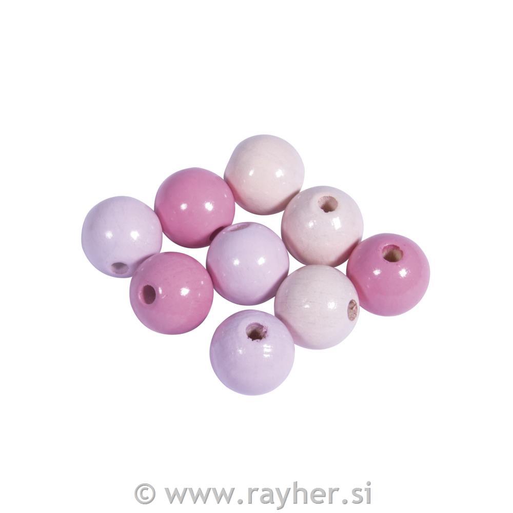 Lesene perle, FSC 100%, 12mm, pink, 32 kos