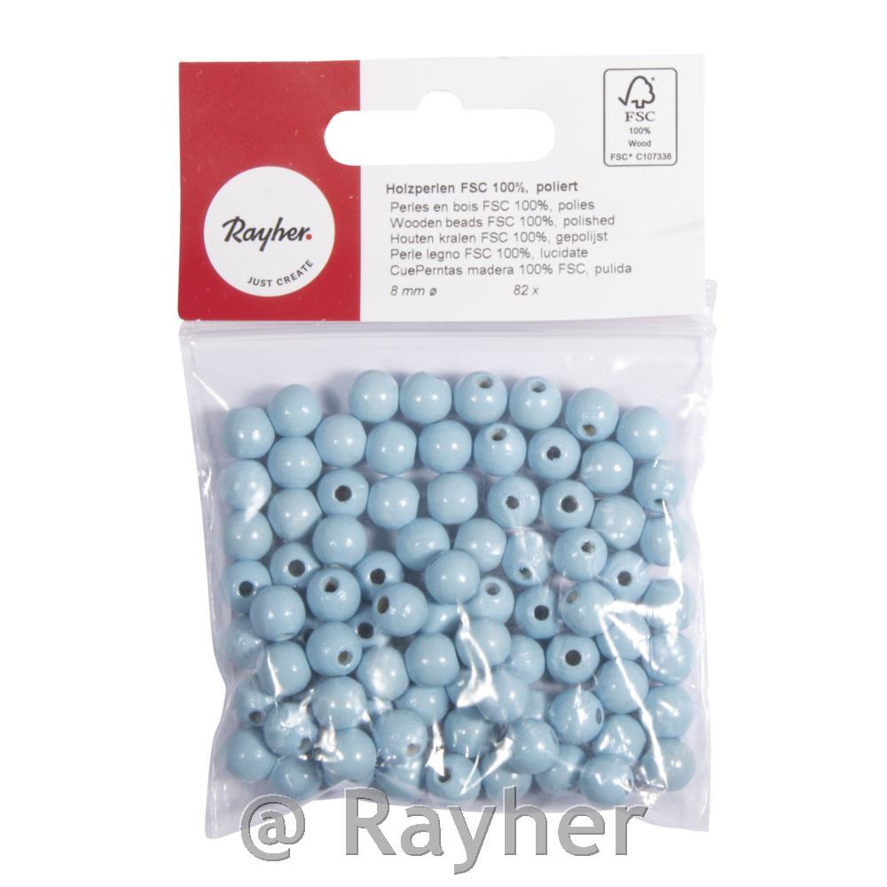 Lesene perle, lakirane, enostavne za nizanje na vrvice, premer luknje približno 2,2 mm. Narejene so iz bukovega lesa, v Nemčiji, imajo certifikat FSC ( odgovorno gospodarjenja z gozdovi). Lesene perle so odporne proti slini in znoju.