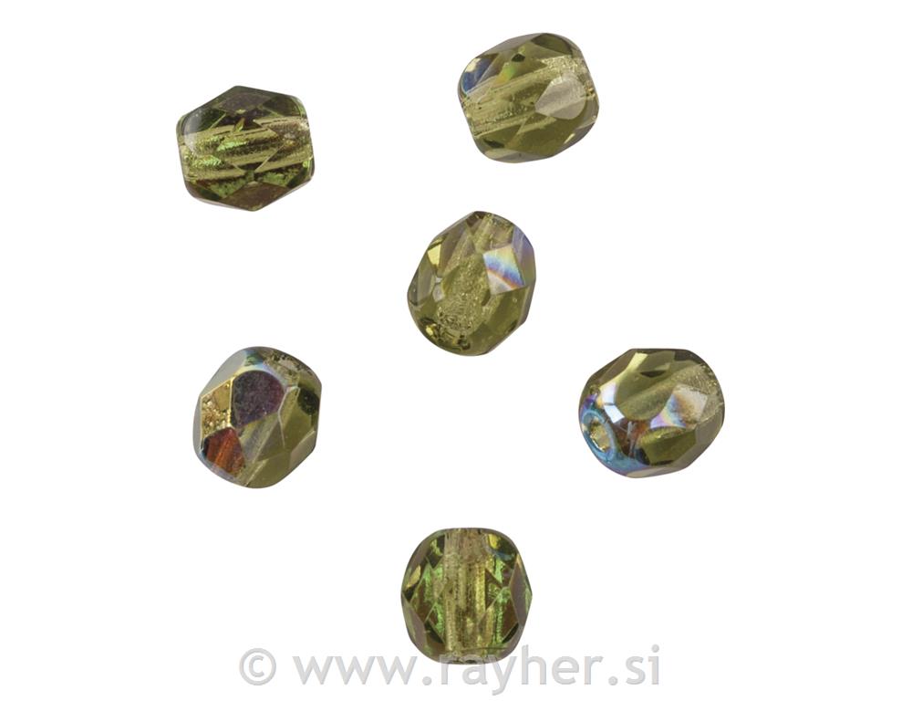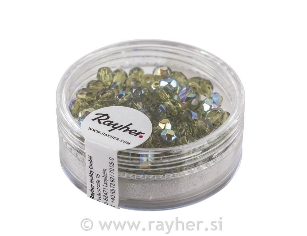 • Perle brušeno steklo, 4mm o, olivne, 100 kom.
