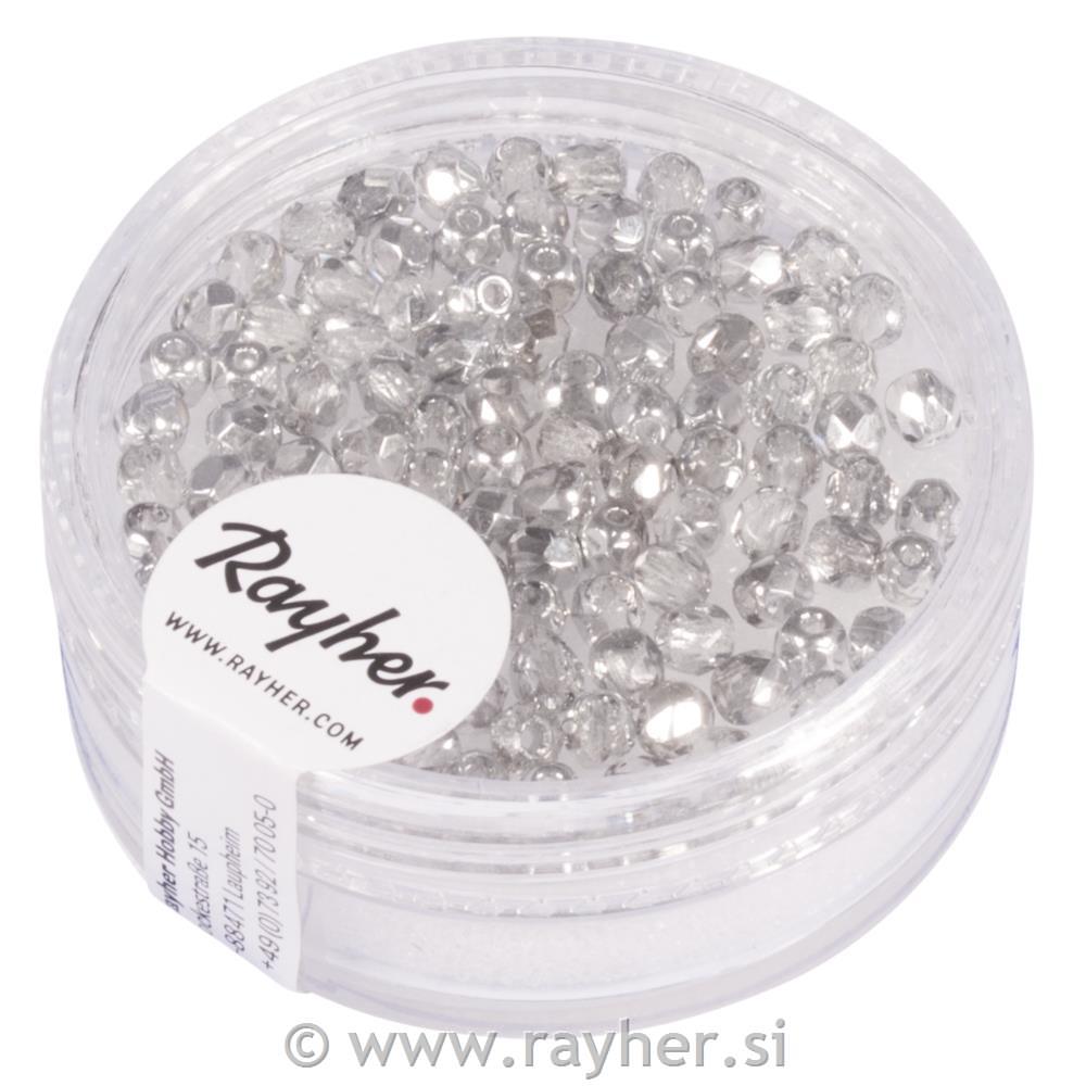 Glass crystal bead, 3mm o, silver semi-opaque, box 100 pcs.