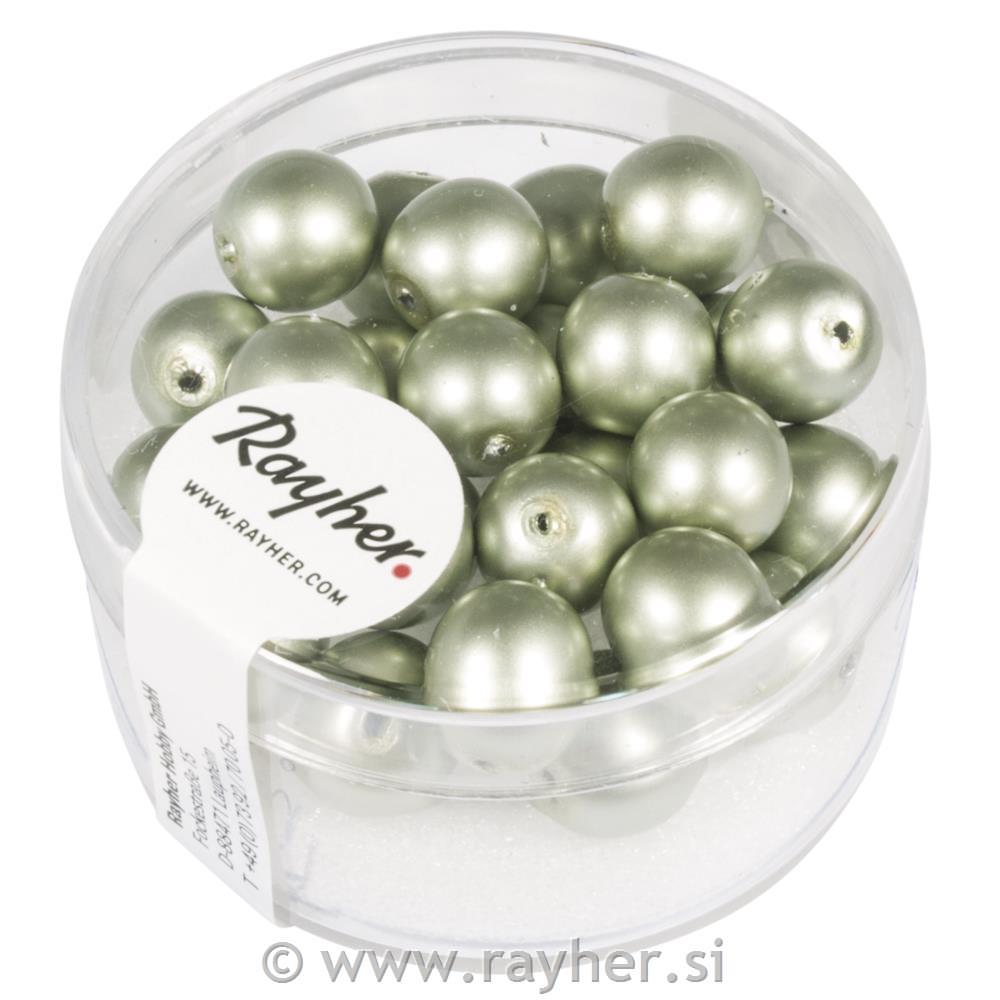 Perle steklene Renaissance mat, 8mm, srebrno olivne, 25 kos