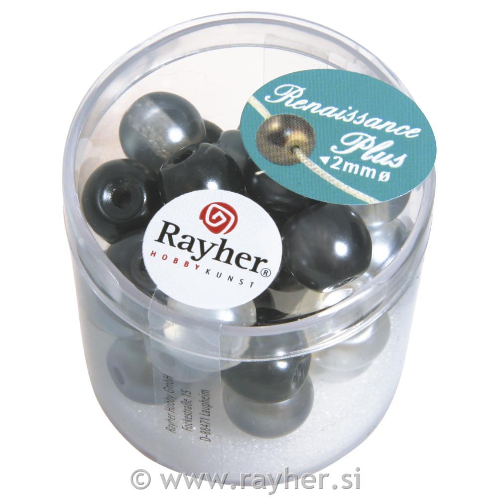 • Perle steklene "Renaissance",pol transp.,bele/sive,10mm,32ko