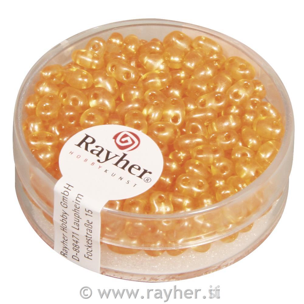 Perle Twin z dvema luknjama, oranžne 10g, 2,5x5mm, prosojne biserne