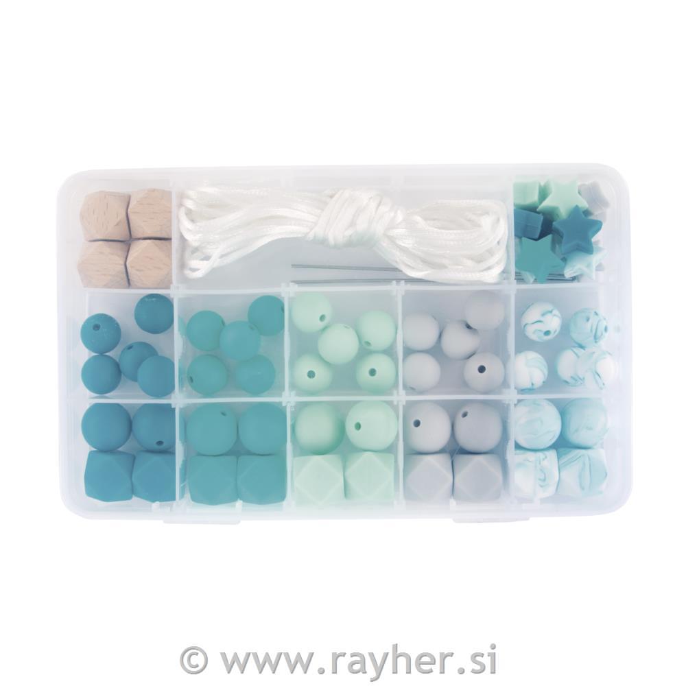 Silikonske perle set Mint, 61-delni
