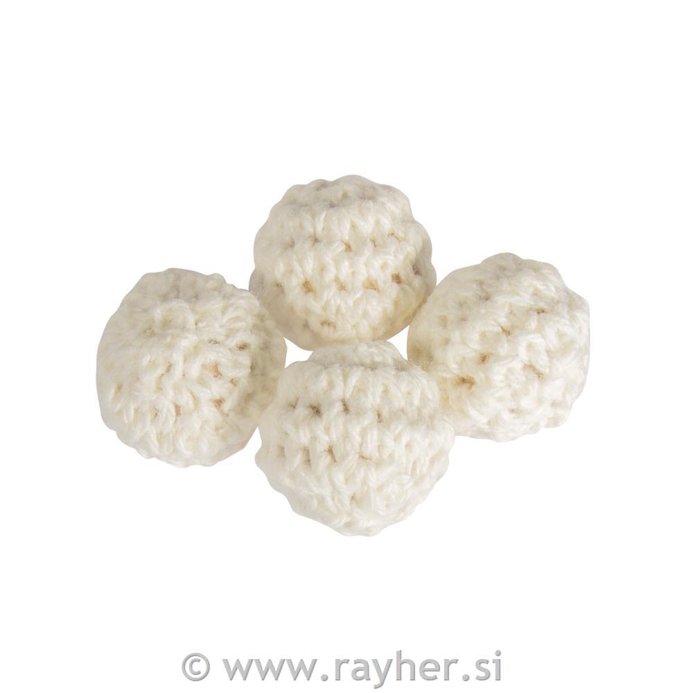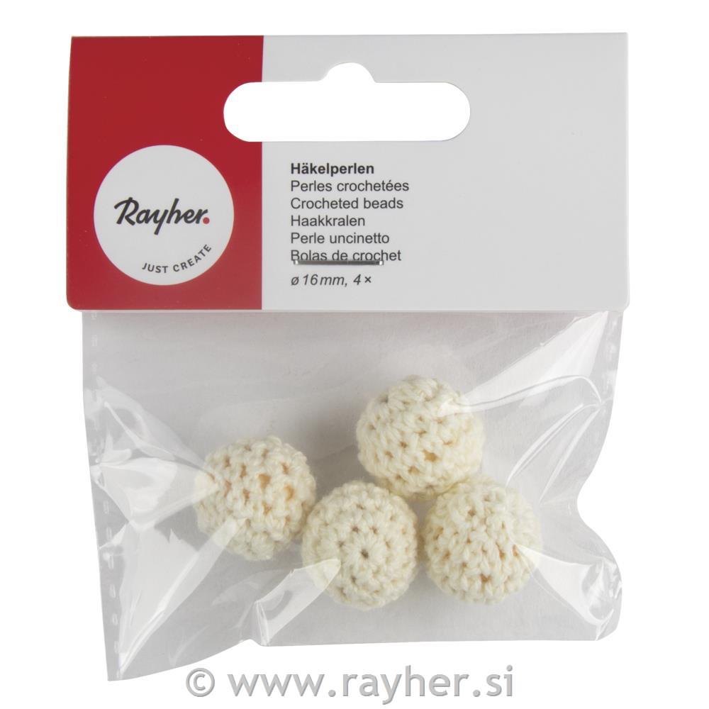 Kvačkane perle premera 16 mm imajo leseno jedro s 3 mm luknjico za vrvico in so kvačkane z barvno kvačkano nitjo iz 100-odstotnega bombaža.