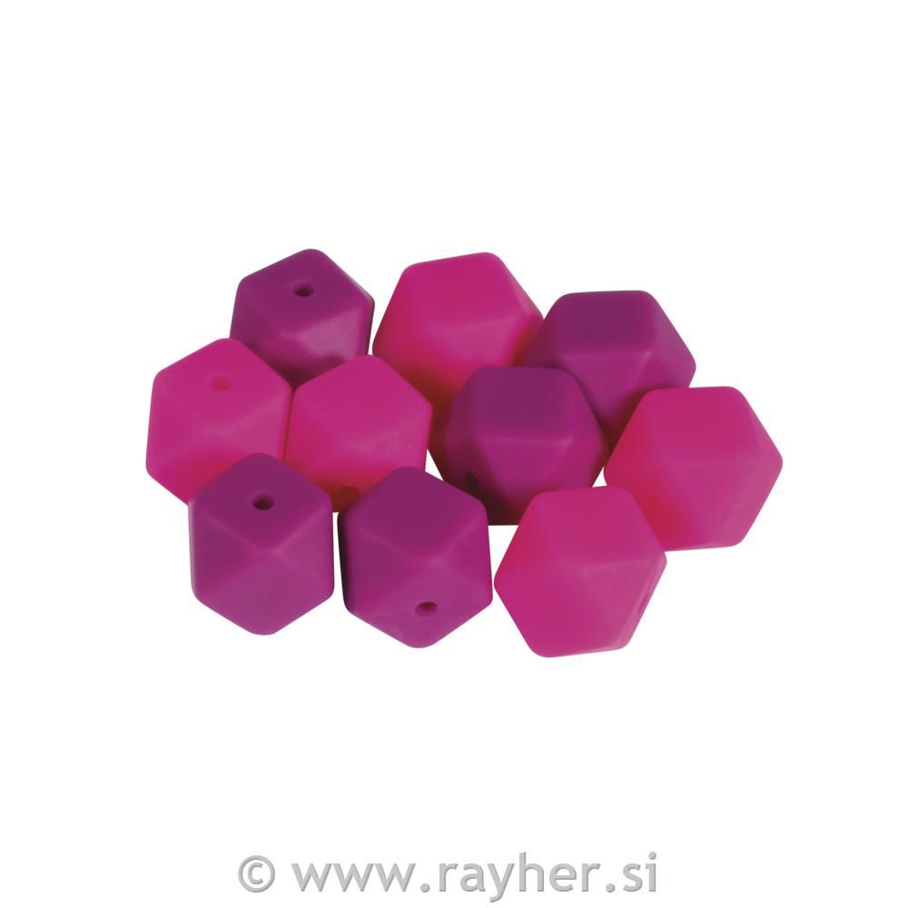 Silikonske perle šestkotne, 14mm, roza, 10 kos