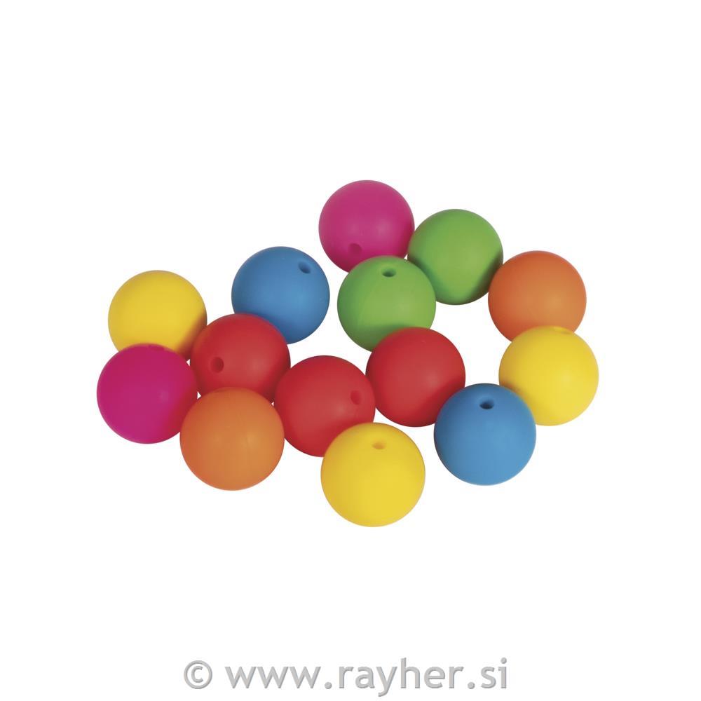 Silikonske perle, 15mm, mešane barve, 14 kos