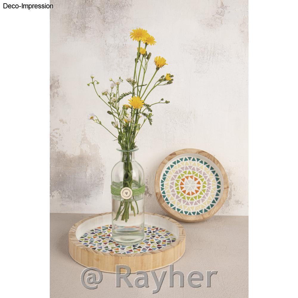 Z živahnimi mozaičnimi vzorci okrasiš lanternice, lesene pladnje, podstavke za lonce, nakit, ogledala in še veliko več. Steklene mozaične kamenčke lepiš z mozaičnim lepilom in fugiraš z fugirno maso. Nova in zanimiva tehnika je tudi vdelava mozaičnih kamenčkov v dekorativni beton. Stekleni mozaični mix lahko kombiniraš s številnimi drugimi mozaičnimi kamenčki Rayher.
