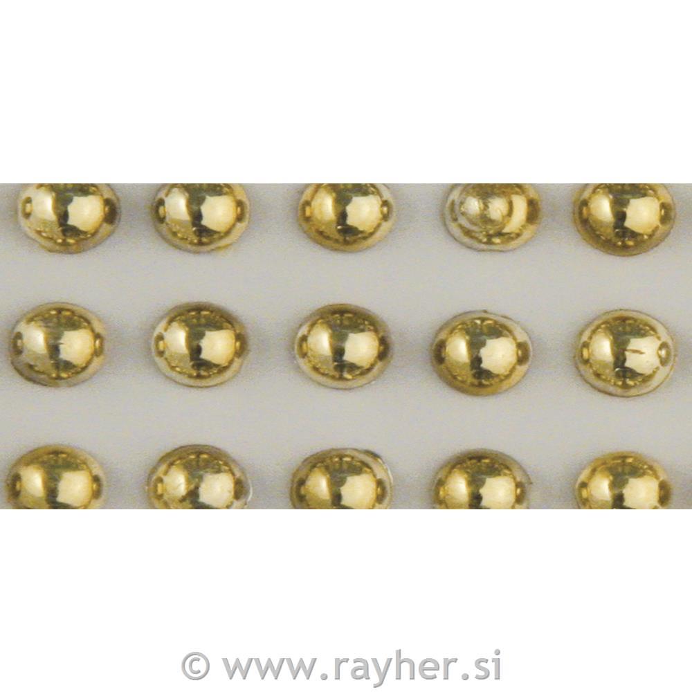 Perle polovične, samolepilne, zlate, 5mm, 80 kom.