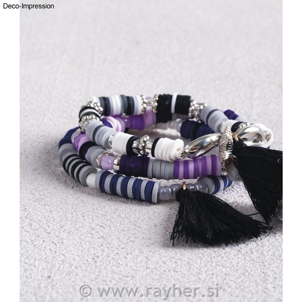 Heishi perle so ploščate kroglice v obliki diska in se v kombinaciji s steklenimi perlami, kovinskimi elementi nakita ali resicami spremenijo v edinstvene zapestnice.