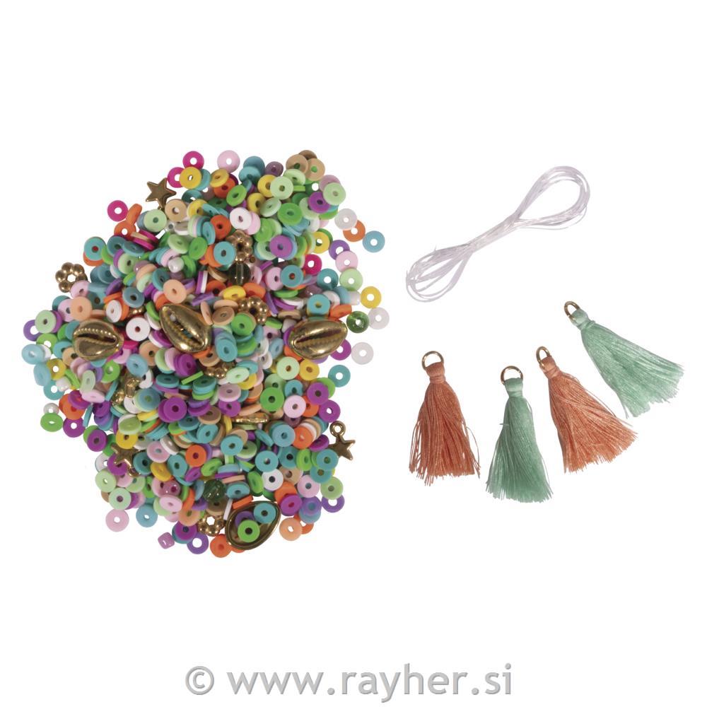 Heishi beads are flat disc-shaped beads and once combined with glass beads, metal jewellery elements or tassels turn into one-of-a-kind bracelets.