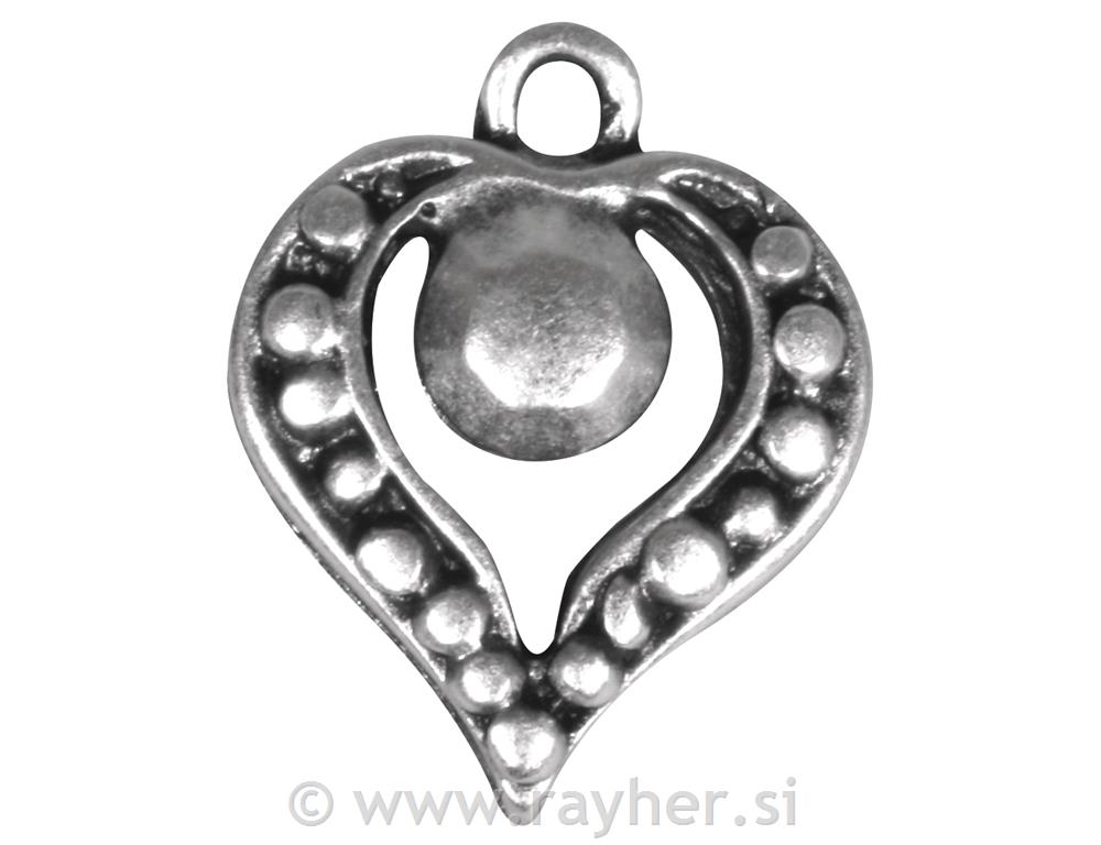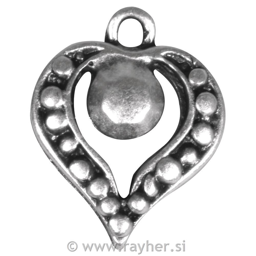 Obesek kovinski: srce, srebrn, 1,3cm, zanka 1mm o, 1 kos.