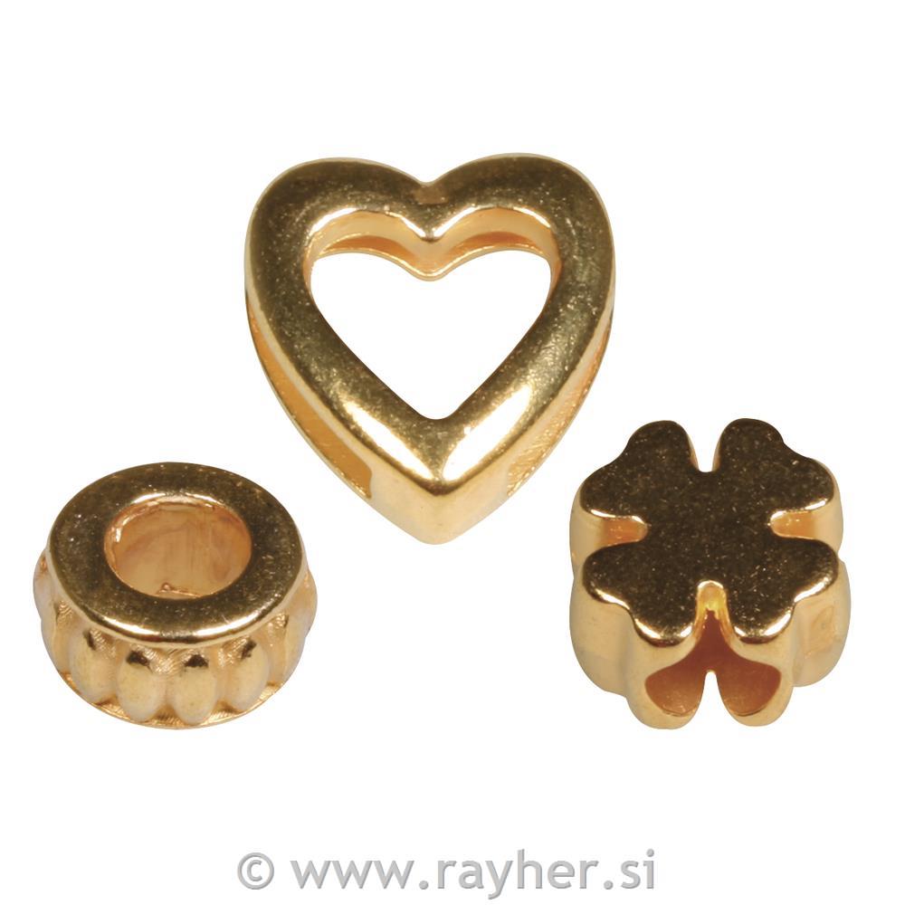Kovinski element "Lovely", zlat, Heart, Cloverleaf & Round
