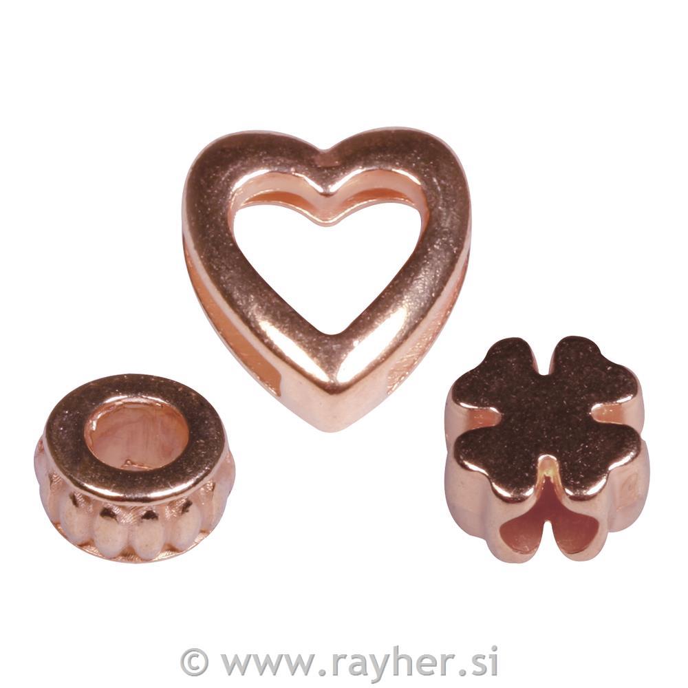 Kovinski element "Lovely", rož-zlat, Heart, Cloverleaf & Rou