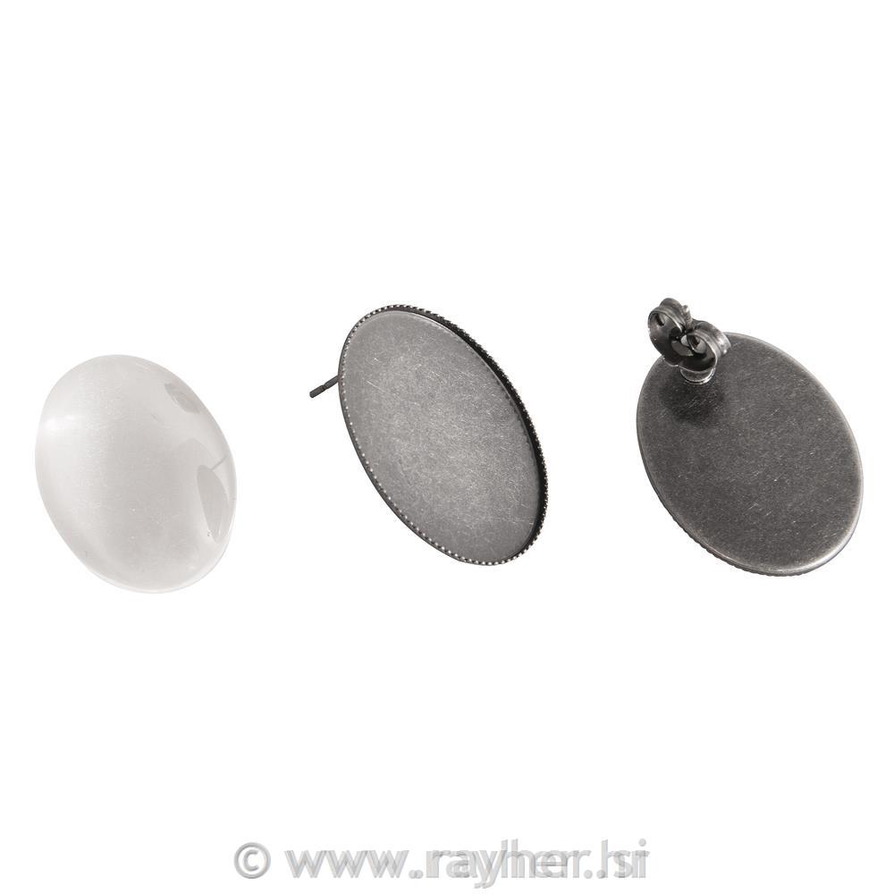 Uhani + steklo, staro srebro, 1.8x2.5cm, 1 par