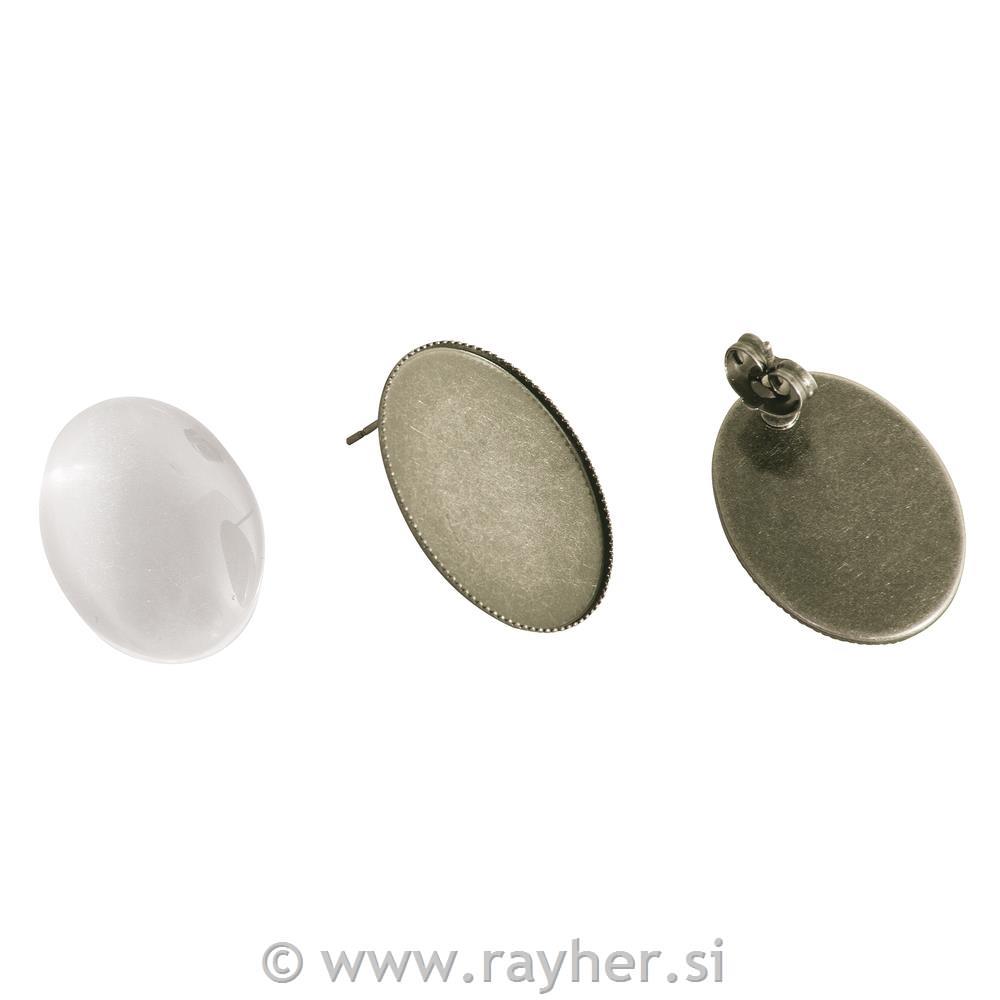 Uhani + steklo, staro zlato, 1.8x2.5cm, 1 par