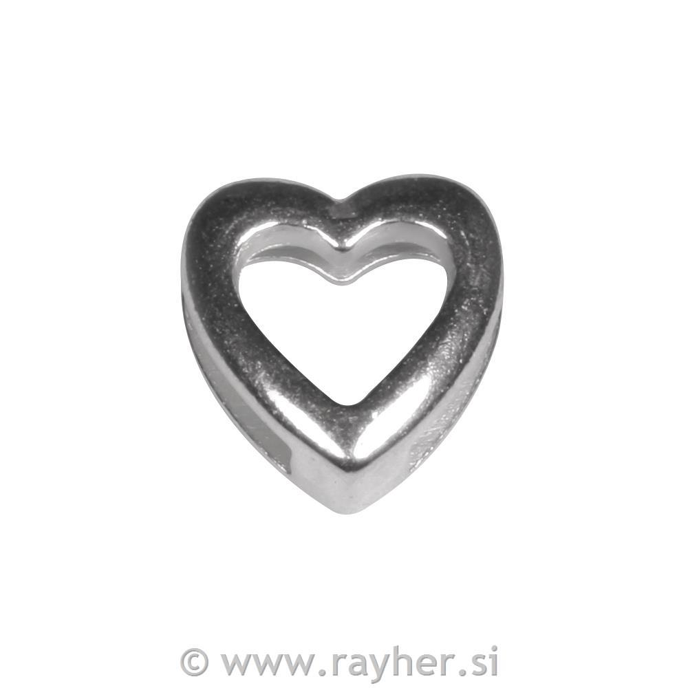 Kovinski element: Srce, srebrno, 1.3x1.4cm