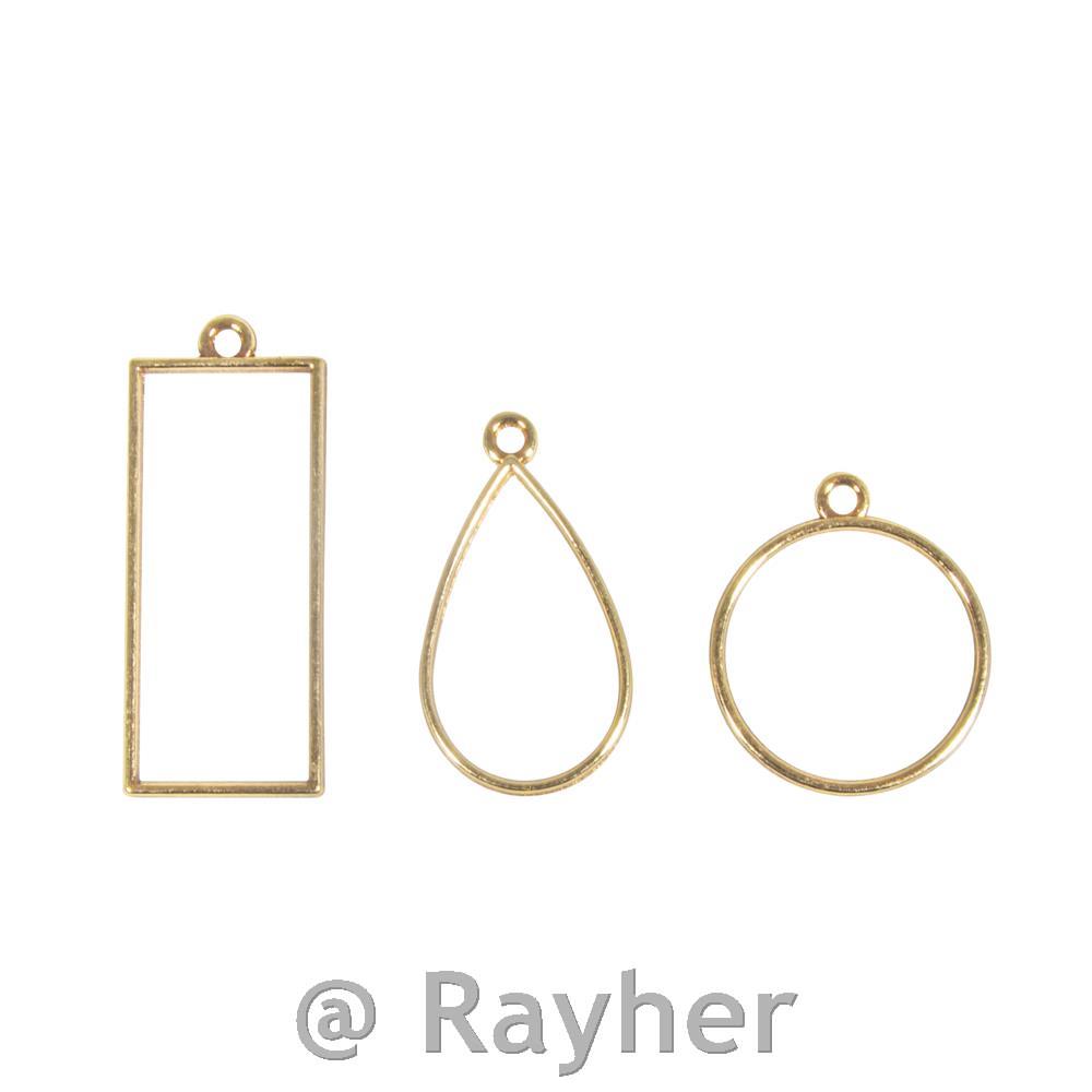 Kovinski obeski, zlat: krog, kapljica, pravokotnik, set 3
