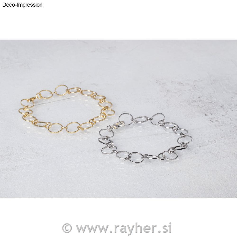 Kreativnost je tu brezmejna! Obesite, mešajte in kombinirate – z našo ponudbo dekorativnih elementov je to povsem enostavno! Verige z vezmi služijo kot osnova in se lahko nosijo ločeno kot ogrlica ali zapestnica. Za večjo raznolikost se lahko z zaponko jastog enostavno pritrdijo nizi perlic iz različnih barv in materialov, ki se prav tako hitro zamenjajo.