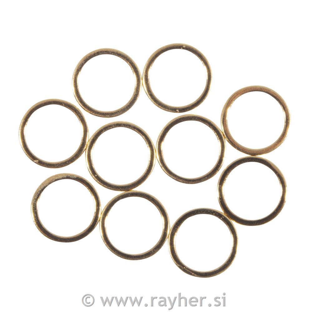 Ploski kovinski obročki 10 mm, zlati, 10 kos