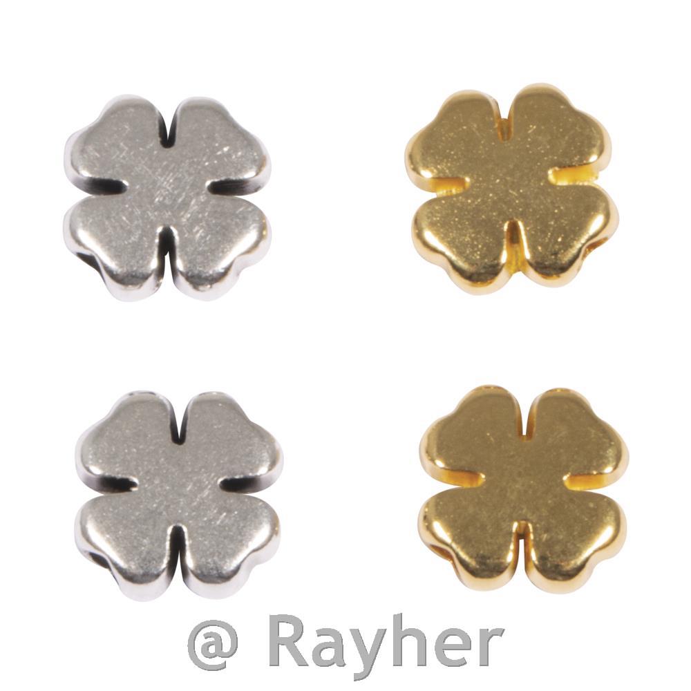 Kovinska perlica Deteljica,, 2x zlata, 2x srebrna, 8 mm, 4 kosi