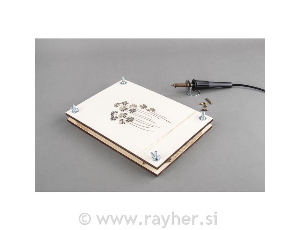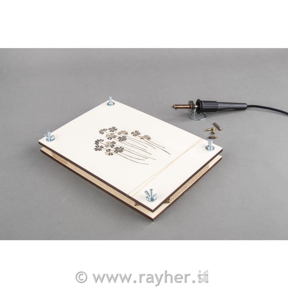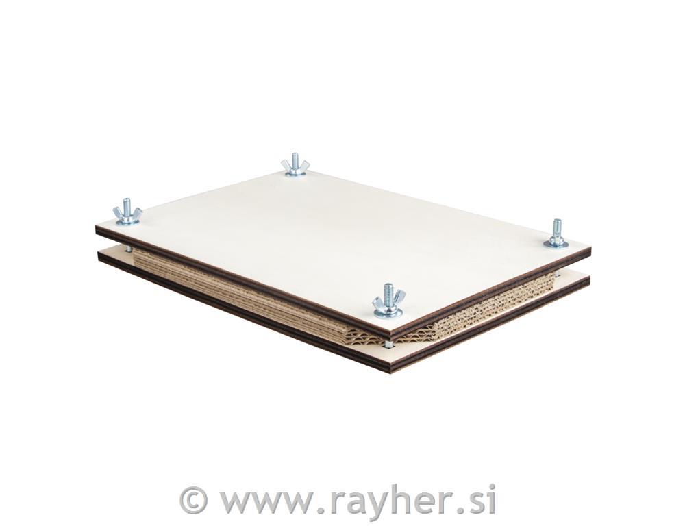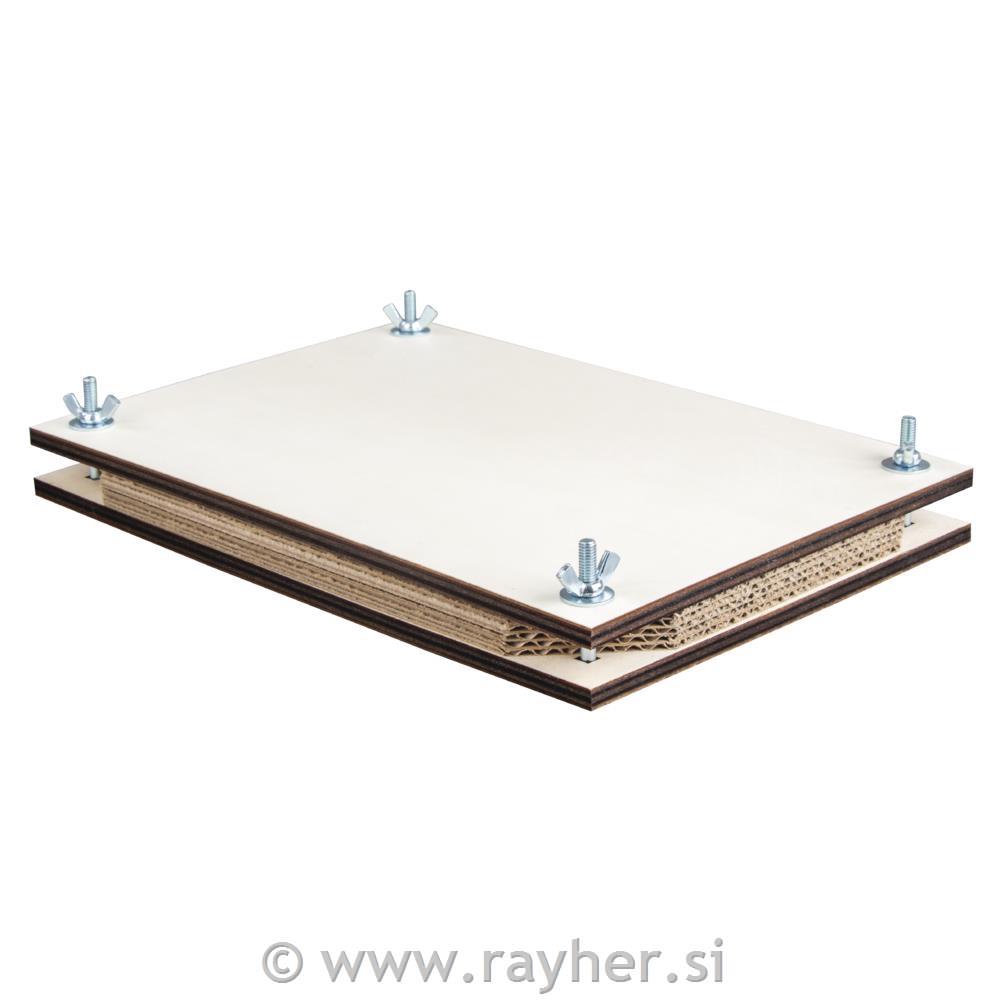 PREŠA ZA ROŽE (za izdelavo herbarija) je sestavljena iz dveh nelakiranih in nebarvanih plošč iz topolovega lesa, med katere je vstavljenih pet kartonov iz valovite lepenke. Vse skupaj je povezano s štirimi vijaki na krilne matice, kar omogoča enostavno sestavljanje. Namenjena je sušenju cvetov, listov in ostalih delov rastlin.