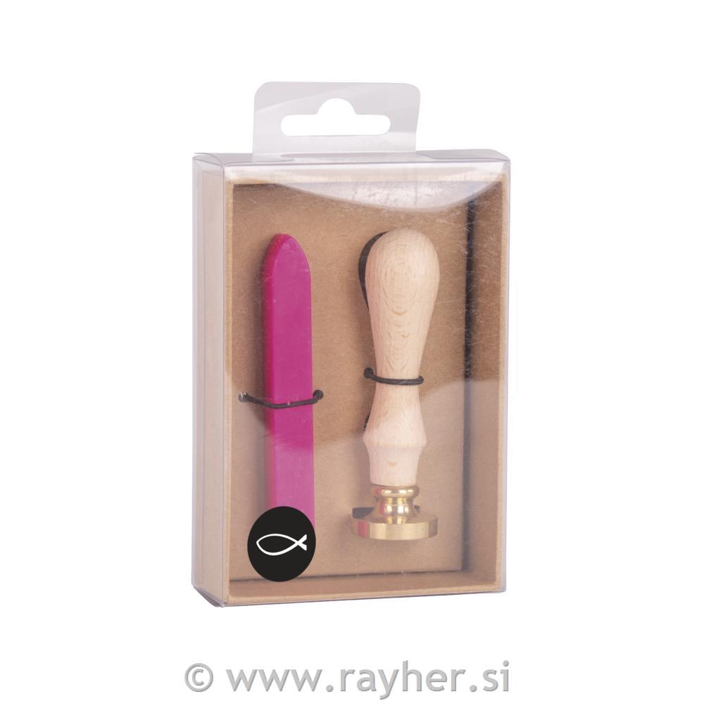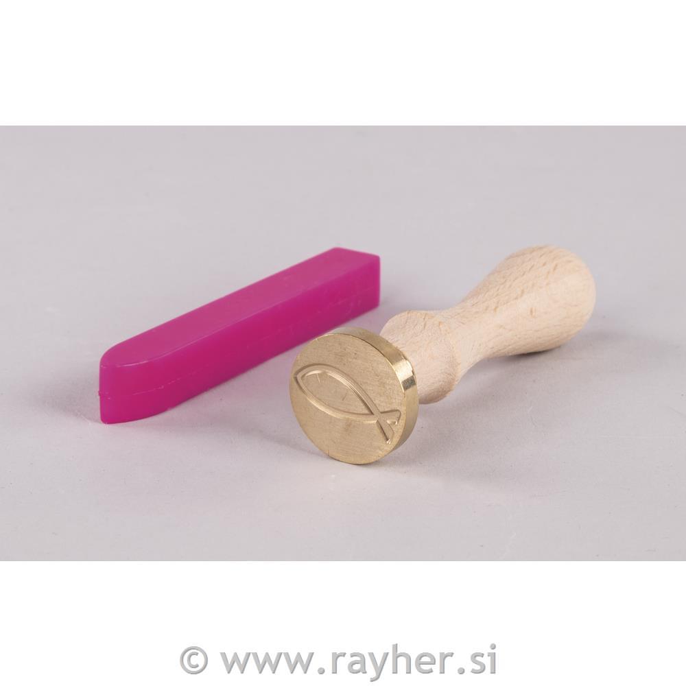 - 1 pečatni žig o 2,5 cm, motiv ribe, z lesenim ročajem