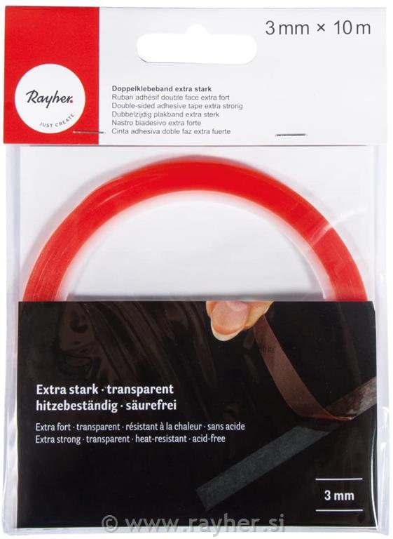 Obojestranski lepilni trak, zelo močen, 3mm, prosojen 10m
