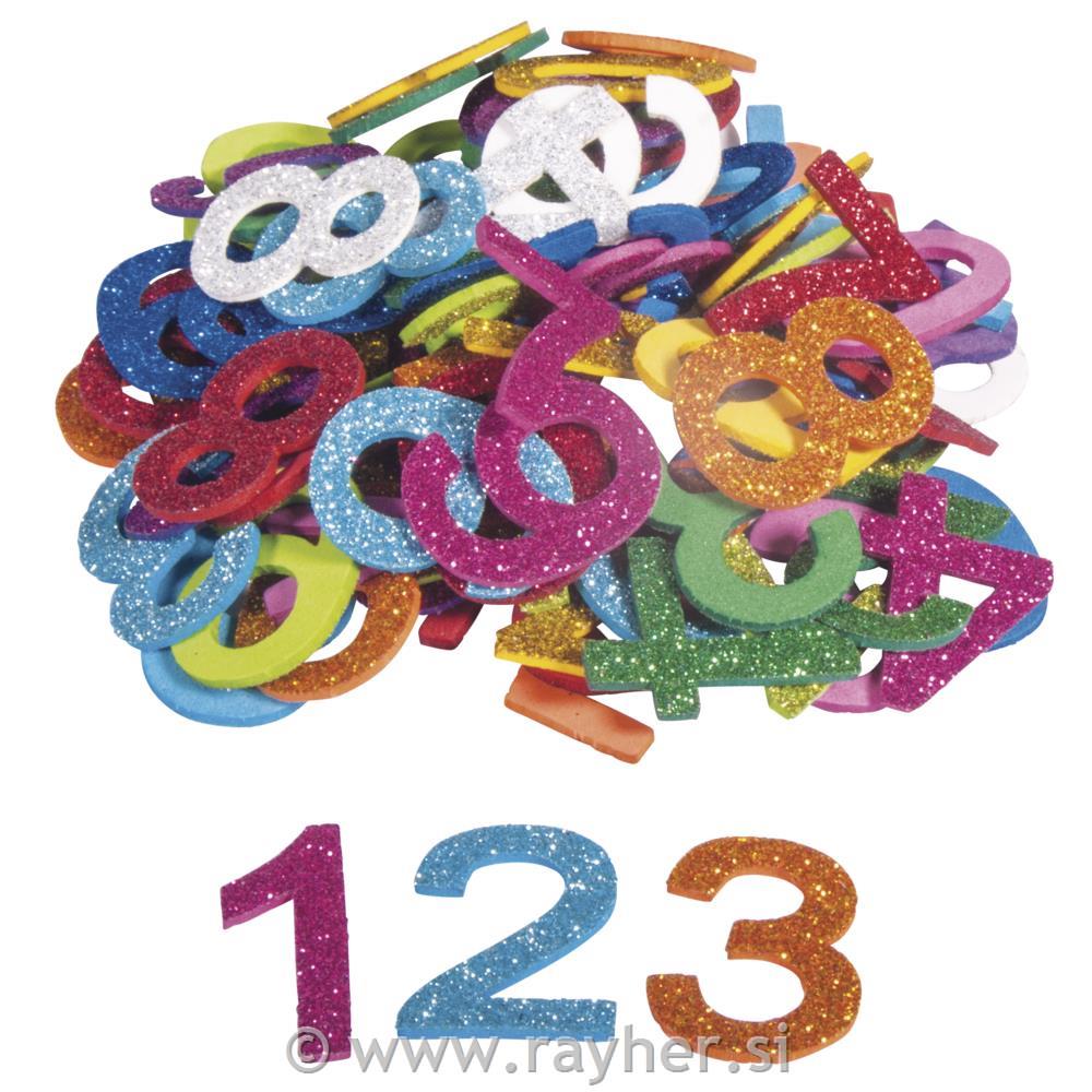 Številke iz penaste gume z bleščicami,samolepil., 3cm,100kos