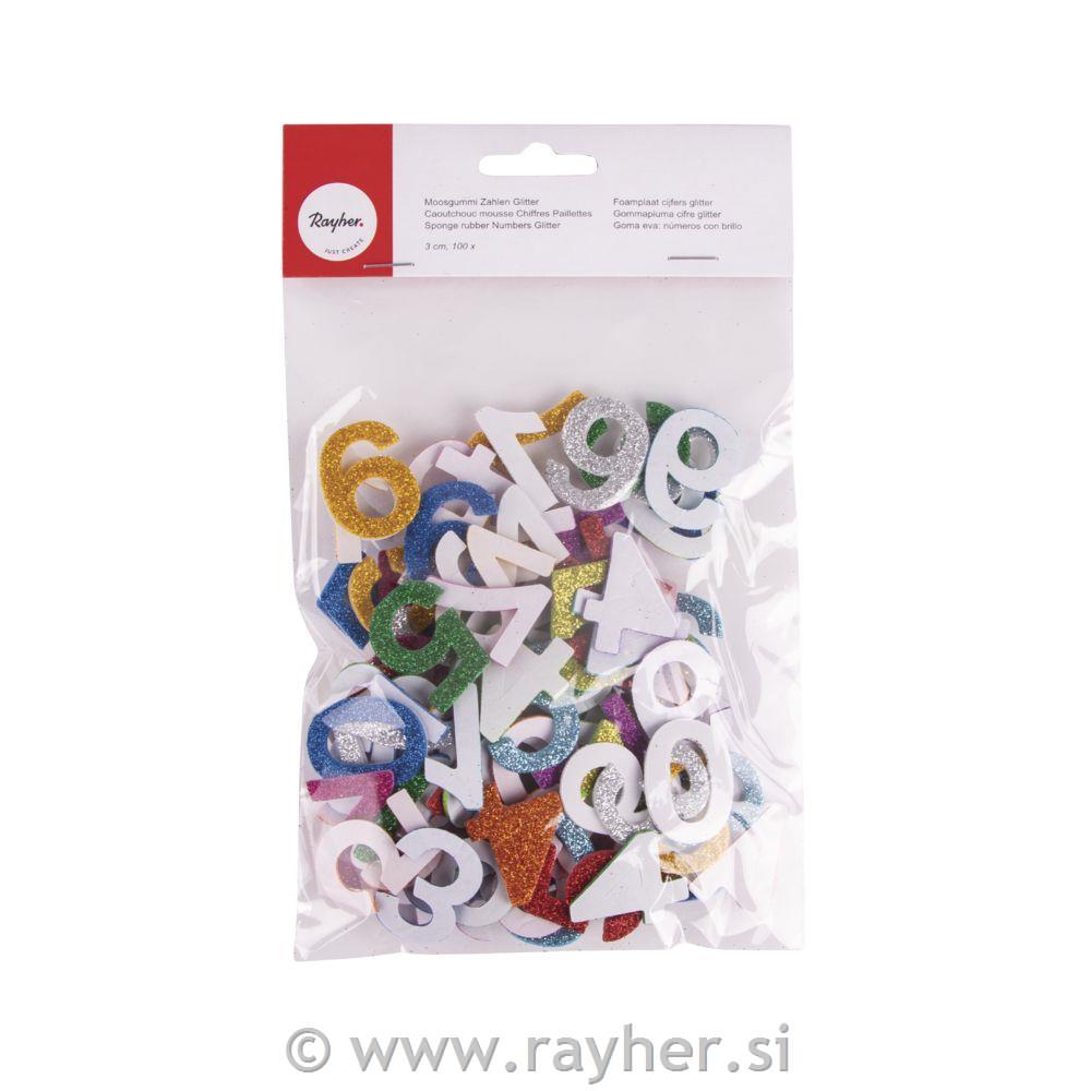 Številke iz penaste gume z bleščicami,samolepilni, 3cm, 100 kosov