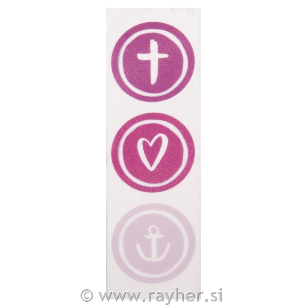 Wax motif Faith Love Hopepink9.5x3cm, tab-bag 1pc