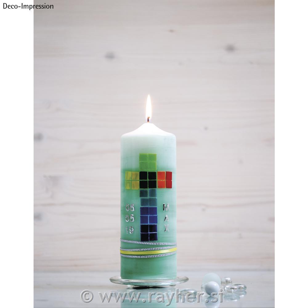 Voščena folija se zelo dobro oprime sveč, plastike ali stekla. Navadne sveče, okrašene z voščeno folijo, postanejo edinstveni oblikovalski kosi, ki so skorajda predobri, da bi goreli. Lahko vzamete preprosto pripravljeno svečo ali pa z modelom za svečo odlijete svojo svečo. V naši trgovini lahko najdete kalupe, vosek, stenj in sveče.