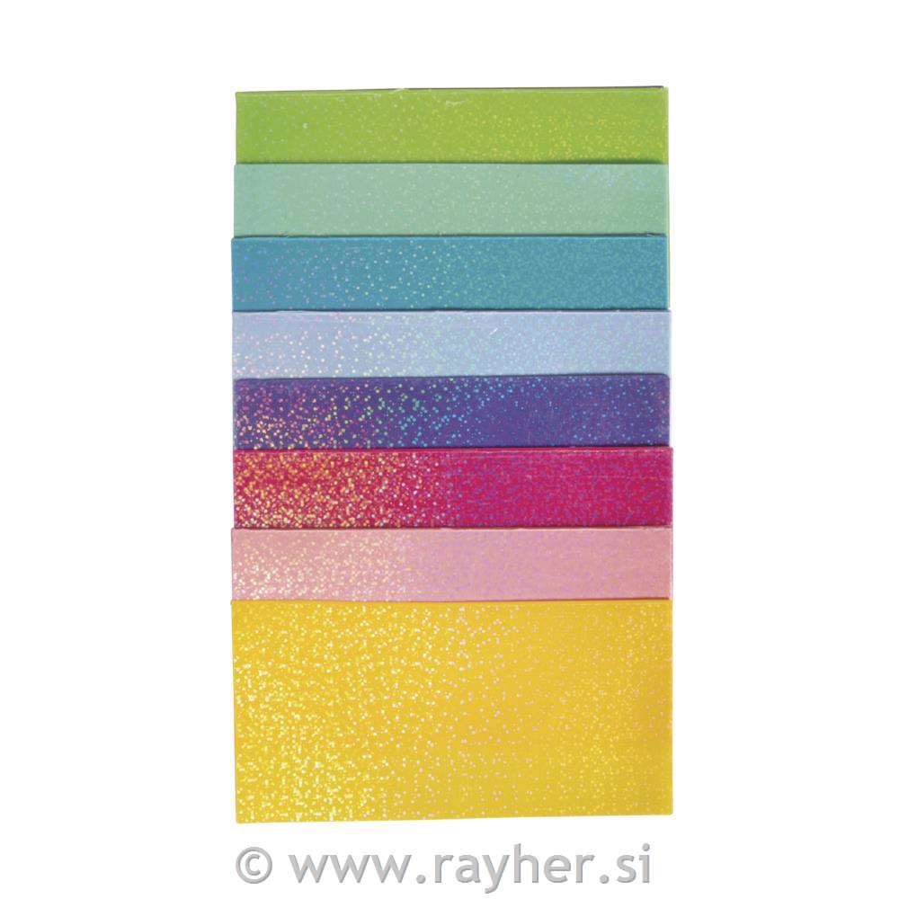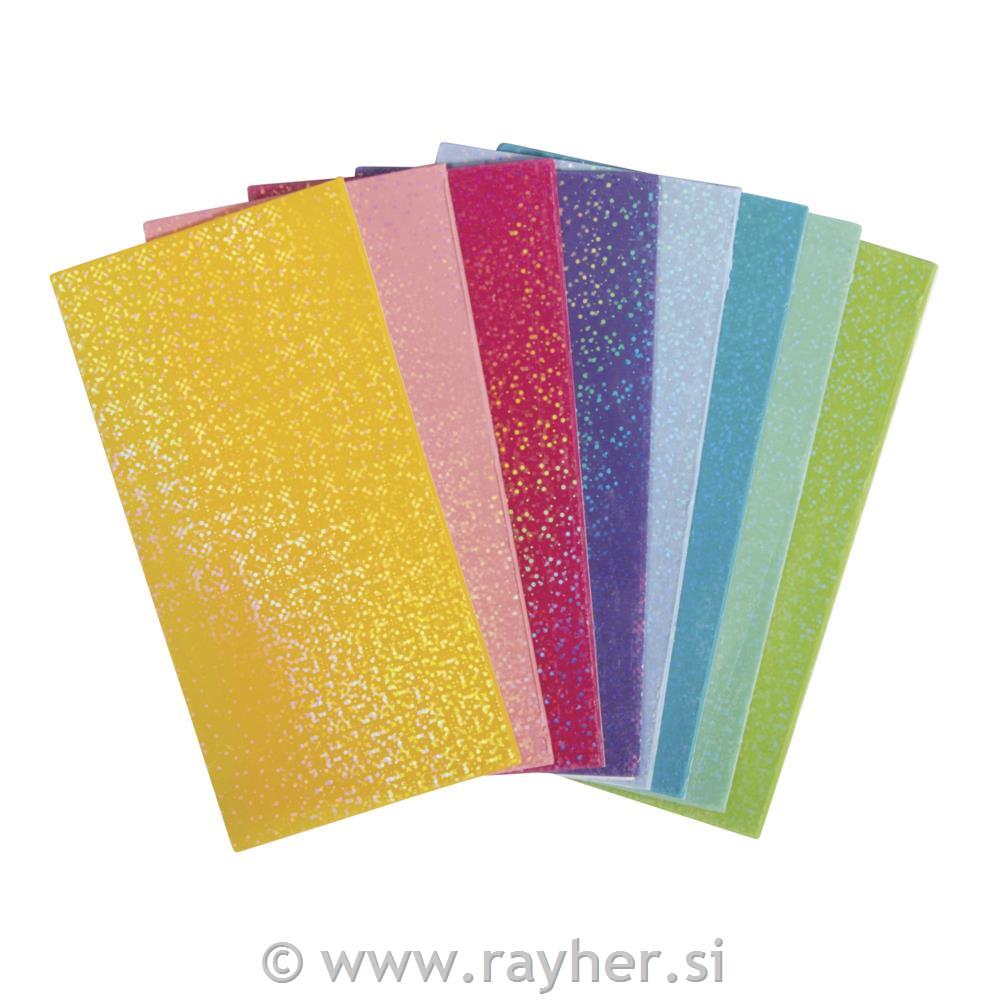 Vsebina: 8 listov voščene folije z bleščicami, dimenzija: 10 x 5 cm
