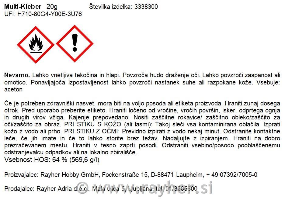 Večnamensko, prosojno lepilo. Hitro in močno. Lepi različne materiale-les, keramika, umetne mase, filc, ipd. Ni primeren za lepljenje stiropora.