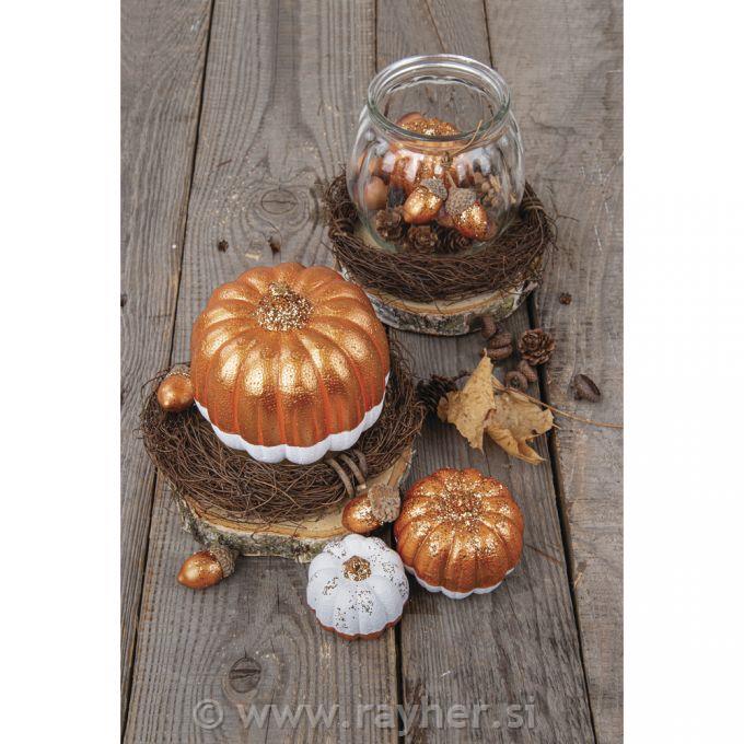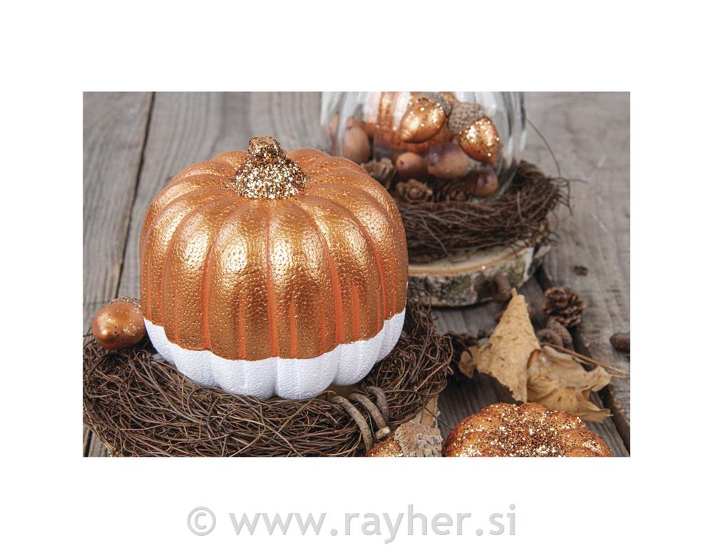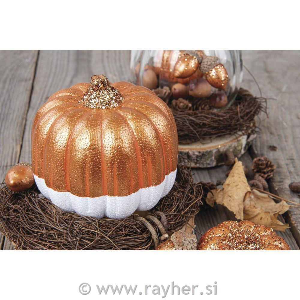 Majhno belo bučo dimenzije 10x11cm iz stiropora lahko čudovito spremenite, ne glede na to, ali gre za jesensko dekoracijo mize ali strašljivo dekoracijo za zabavo za noč čarovnic.