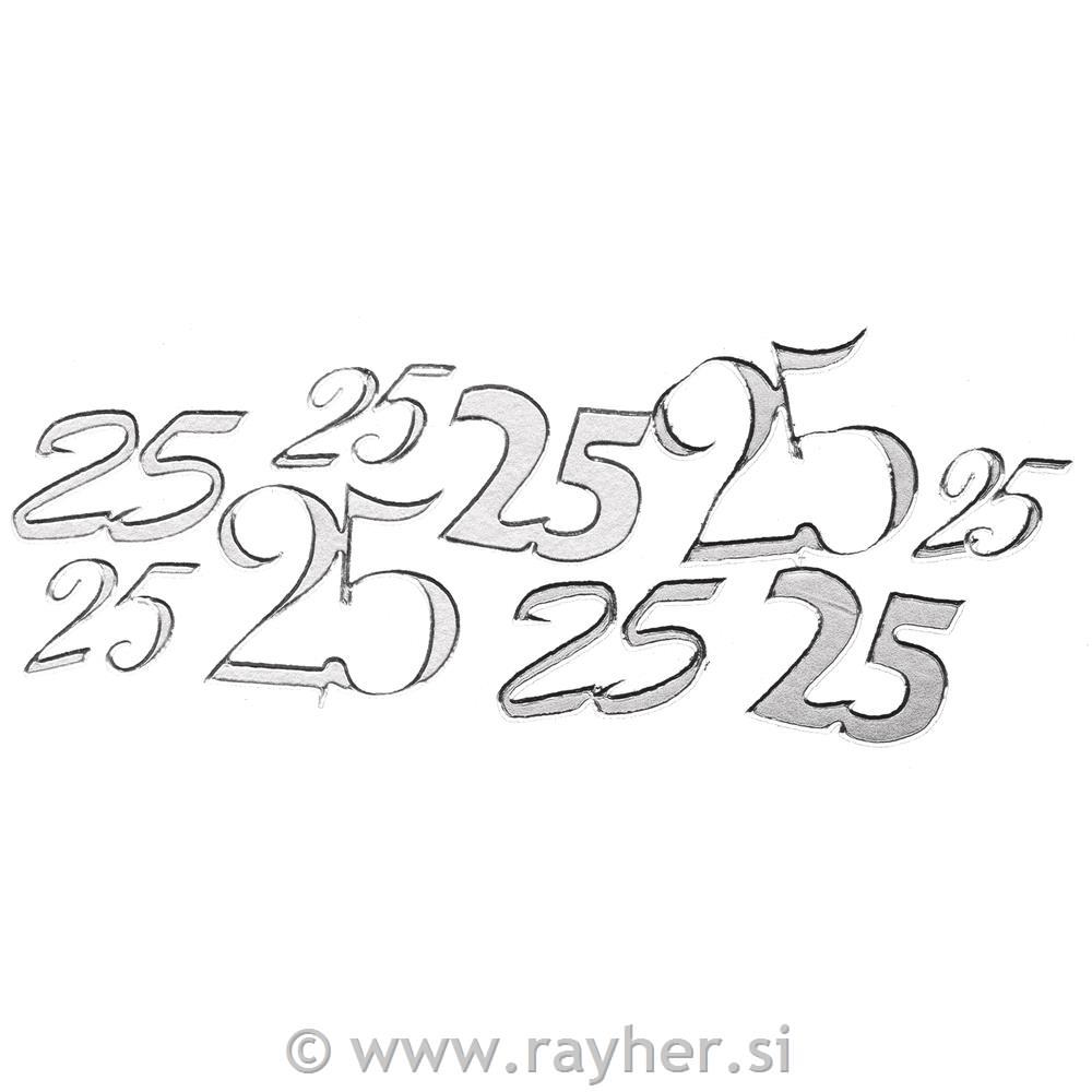 Nalepke "25", srebrna, 10x24,5 cm