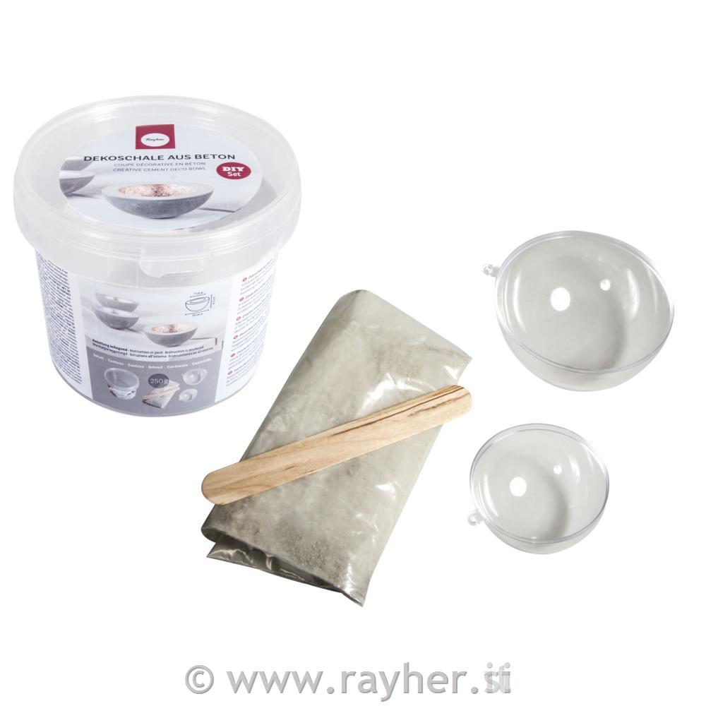 Set vsebuje - 250 g cementa, 1x polovična krogla 7 cm, 1x polovična krogla 10 cm,