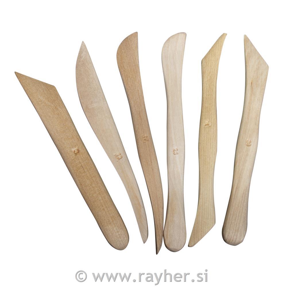 Šest različnih orodij za modeliranje iz trdnega in gladkega lesa je idealnih za oblikovanje, modeliranje in delo z modelirno glino, modelirno maso, modelarskim betonom itd.