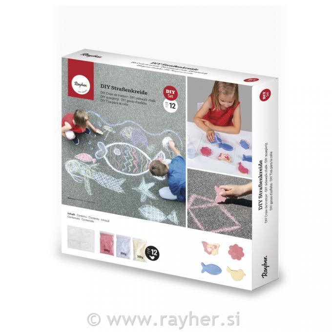 Vsebuje vse potrebno za zabavno izdelavo lastnih talnih kred zanimivih oblik.