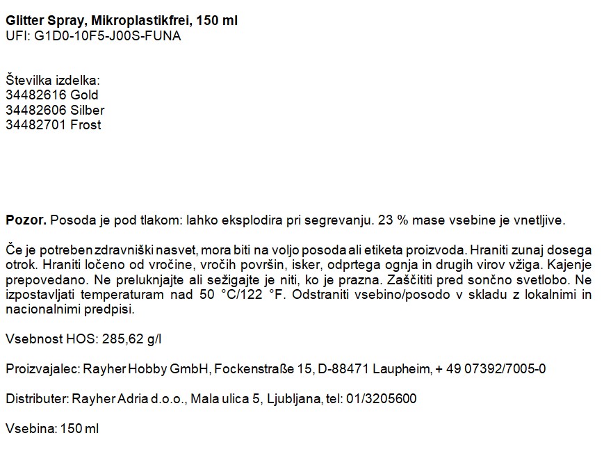 rayher.si Hobi program Barve, flomastri, konture, mediji, laki, hobi čopiči Spreji Sprej z bleščicami Sprej z bleščicami, srebrn, 150 ml, brez mikroplastike Aktualna cena:8,99 € Šifra artikla:34482606 Blagovna znamka:Rayher Zaloga: na zalogi Dodaj v košarico kos Opis izdelkaVedno upoštevajte informacije na etiketi izdelka.