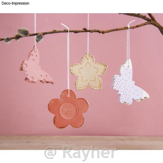 Dimenzije obeskov: metulji - 64x37 mm in 65x40 mm, rože - 60x60 mm in 50x50 mm, debelina pri polni prostornini 7 mm.
