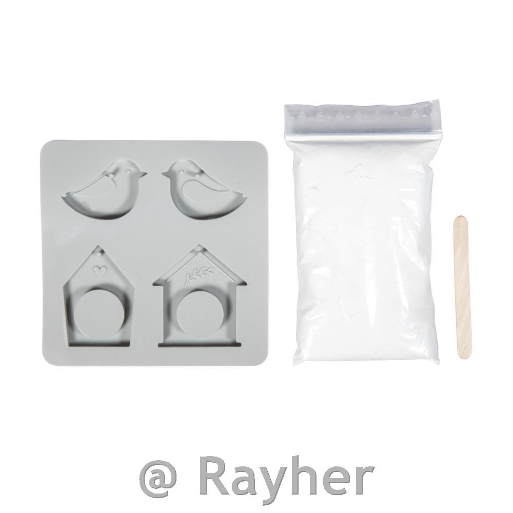 1 silikonski kalup s 4 motivi, ptice in ptičje hišice