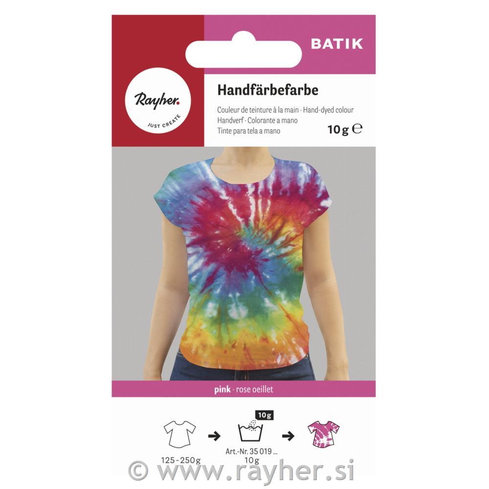 Navodila za uporabo: Prah raztopite v 2-5 l vode kateri ste dodali 2 žlici soli. vodo segrejte na 90°C in tkanino ohlapno potopite v vodo. Če delate tehniko batik naj bo voda ogreta do 50°C. Namakajte 30-60 minut (glede na želeno intenziteto barve) in vmes večkrat premešajte.