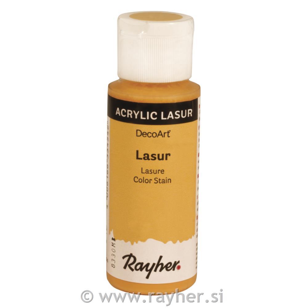 BARVNA LAZURA ZA LES 59 ml je tekoča akrilna barva, namenjena toniranju izdelkov iz lesa. Les nežno obarva ter ga zaščiti pred zunanjimi vplivi. Skoznjo je vidna struktura lesa.