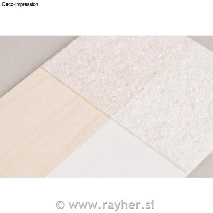 The fine structural snow is a fine-grained, snow-white, highly viscous acrylic putty containing a fine holographic glitter dust. It has outstanding modelling features and thanks to the fact that it is dimensionally stable, amazing 3D effects can be achieved. The holographic glitter dust makes the snow sparkle like frost. Fine, snow-white structural snow with holographic glitter dust, pot 150 ml - Water-based – Weather-resistant – Smear-resistant - Outstanding modelling features - Dimensionally stable - Suitable for absorbent and non-absorbent surfaces such as wood, paper, papier-mâché, MDF plastics, ceramics, creative-cement, styrofoam, metal, plastics, canvas, glass, stone etc. Its application: - Stir well before use - Surface should be dry, grease-free and clean - Protect the pots from frost to maintain the product quality. Rinse the tool with water. Putty can be mixed or painted with Allround Paint, Ultimate Sheen or Outdoor Paint. Apply a thin coat using a paintbrush or sponge. For a wintry snow look: apply the putty with a modelling spatula several times if necessary.