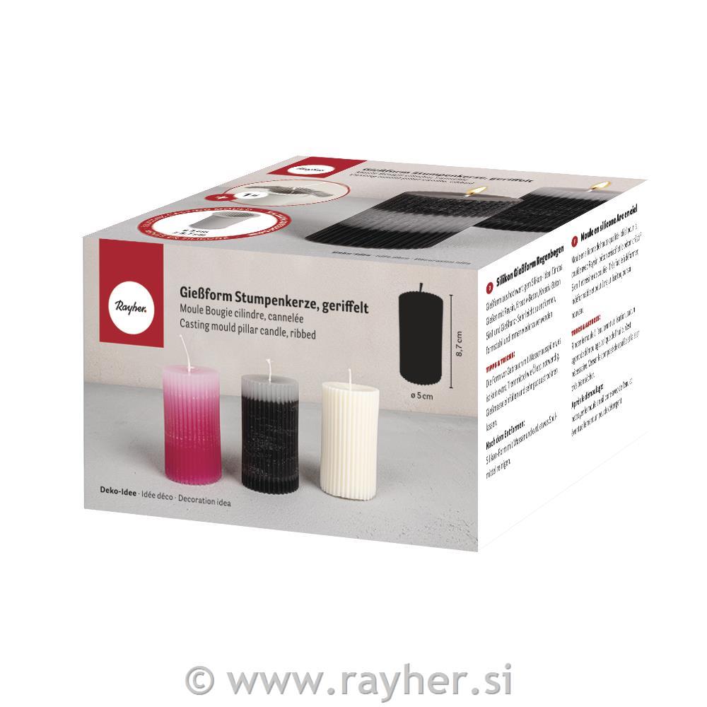 Silikonski kalup Rebrasta sveča v obliki stebra, premer 5 cm, višina 8,7 cm