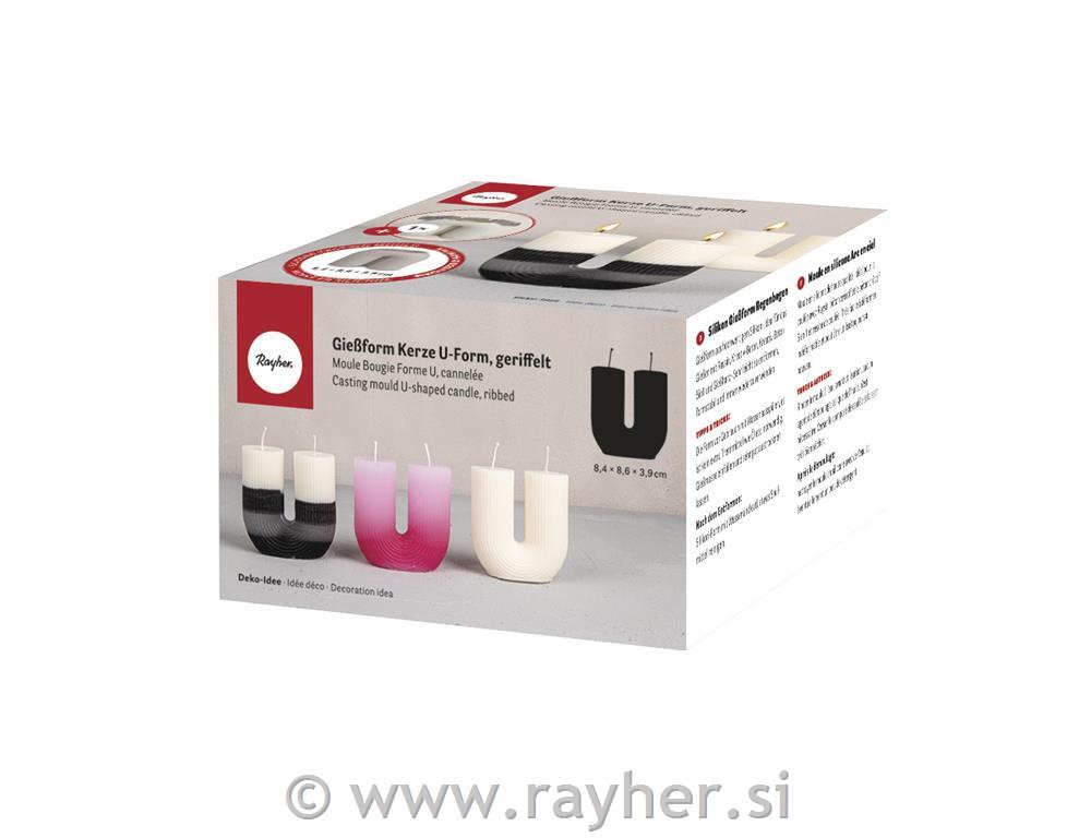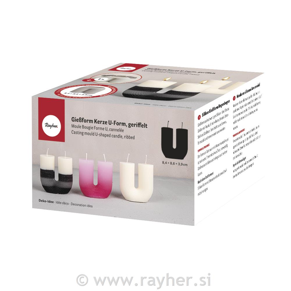 Silicone mould U-shaped ribbed candle, 8.4x3.9cm, height 8.6cm, box 1pc