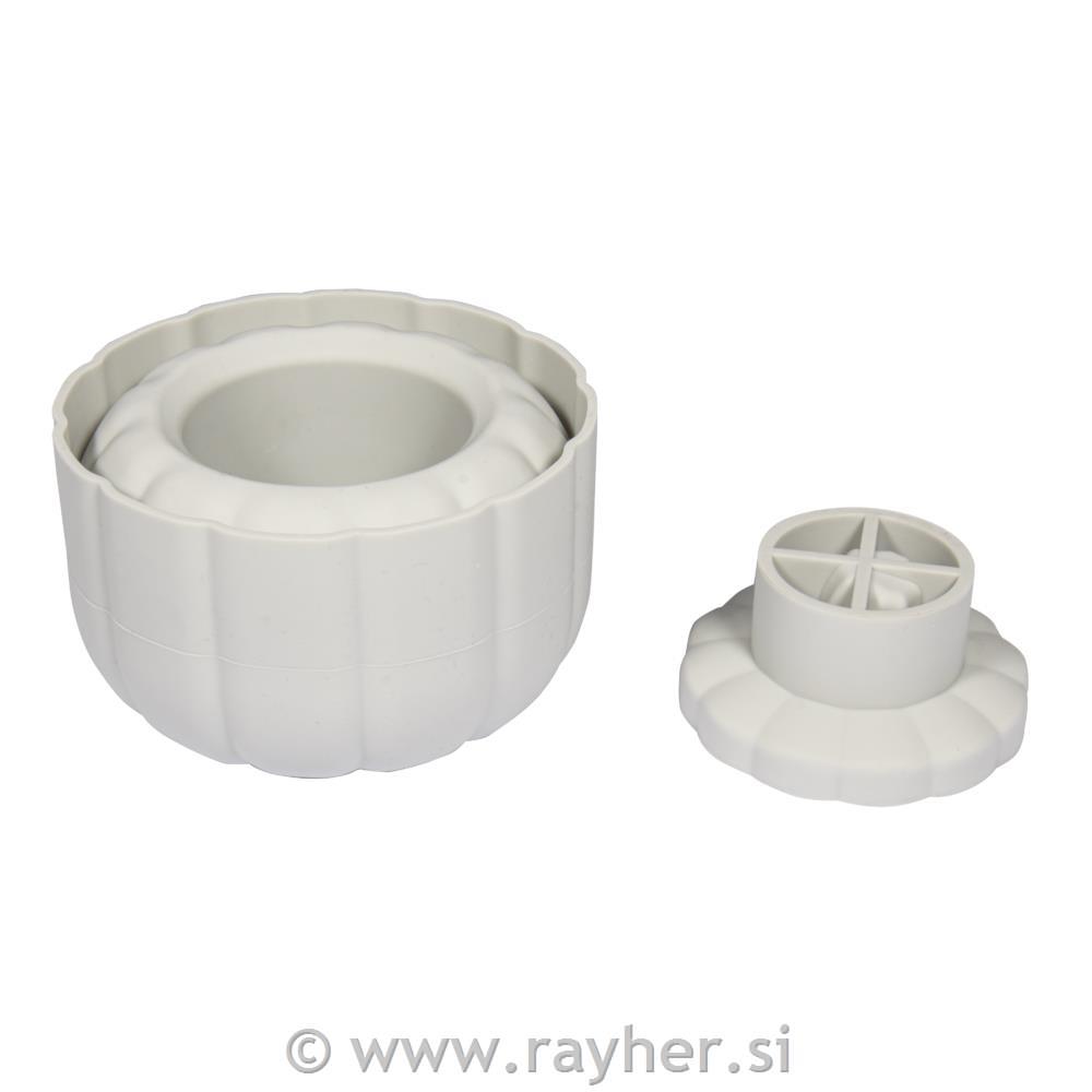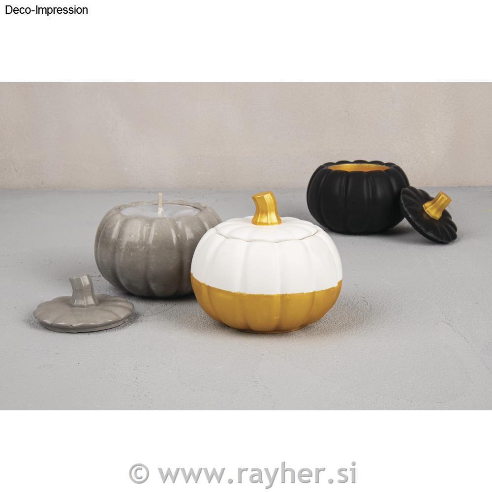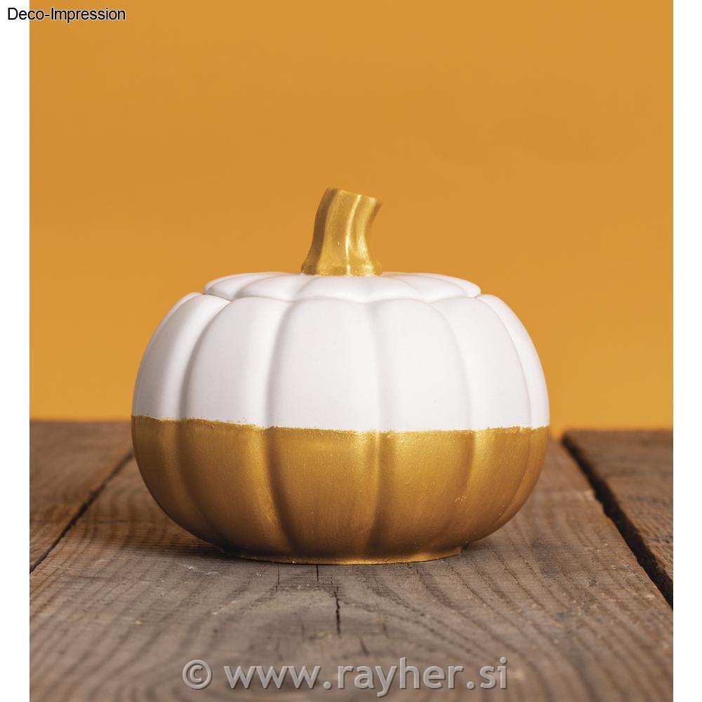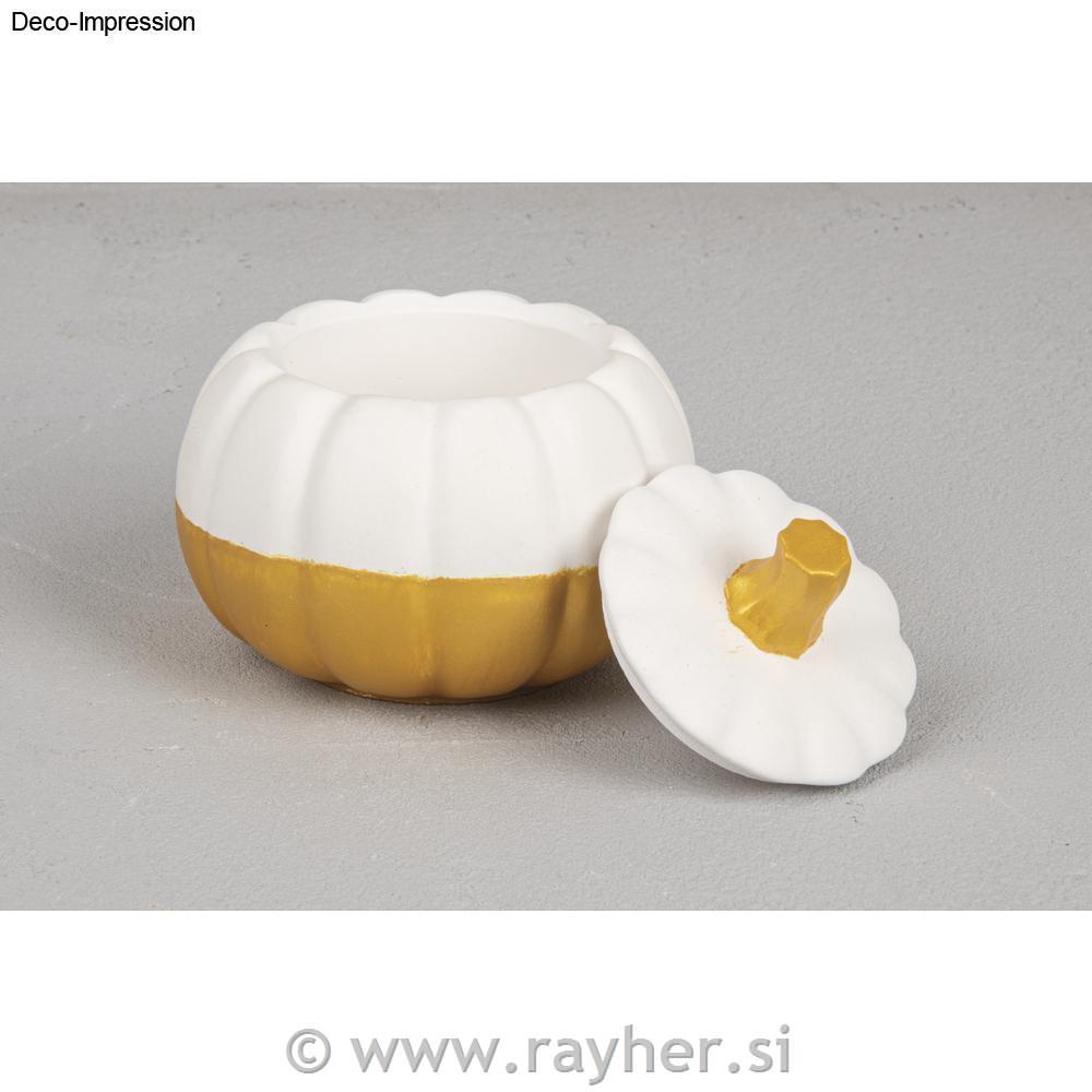 Silicone casting mould, pumpkin with lid, 10 cm o, 8.5 cm high. Thanks to this silicone casting mould, you can successfully cast a small pumpkin-shaped pot out of creative-cement, jewellery concrete, Raysin casting powder and casting resin (not suitable for foodstuffs). Material requirements: e.g. jewellery concrete and creative-cement 5in1 (about 480 g), Raysin 200 (about 400 g). The casting mould is made of high-quality silicone, extremely elastic, dimensionally stable and frost- and heat-resistant (from -40°C to +240°C). Thanks to the extremely elastic silicone material, the shapes can be easily demoulded after drying. Clean the mould afterwards with water and some dishwashing detergent; it retains its shape and can be reused. The most suitable paints and media for painting, writing on and adorning are the acrylic paints, e.g. Outdoor Paint, Allround Paint, Ultimate Sheen, Chalky Finish chalk paint, markers, decorative metal and much more